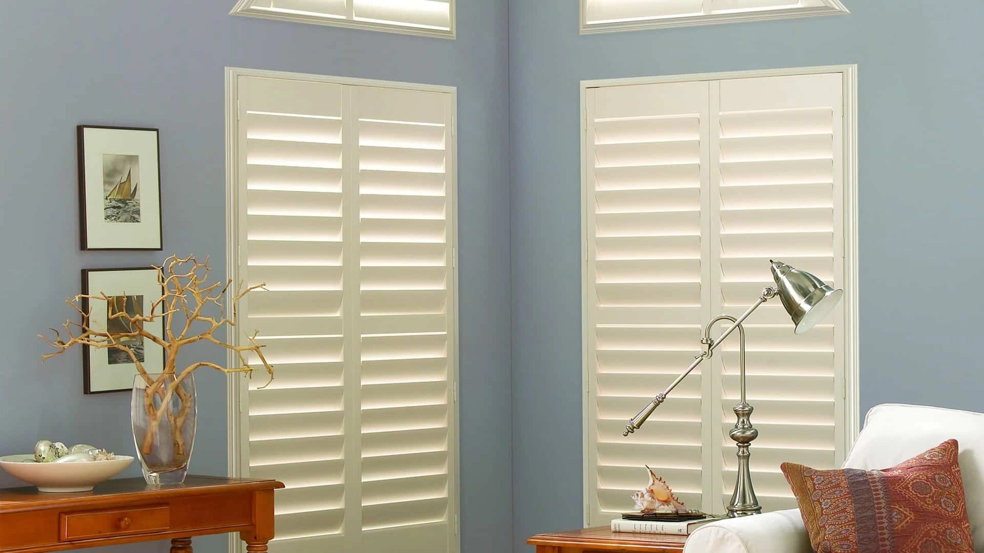 Shutters are a great option for your living room. They provide a sleek, modern look and provide excellent light control, allowing you to easily adjust the amount of natural light entering the room. Just adjust the slats to maneuver the louvers to allow for visibility or absolute privacy. Hunter Douglas plantation style shutters are a versatile and stylish option for your living room. The clean lines and classic look of plantation shutters complement any decor, making them a great choice for your living room. With Hunter Douglas, you can choose from a wide range of colors and finishes to find the perfect match for your living room. From classic hardwood to moisture-resistant vinyl shutters to durable luxury composite shutters, we have a shutter option for your living room and every room in your home.